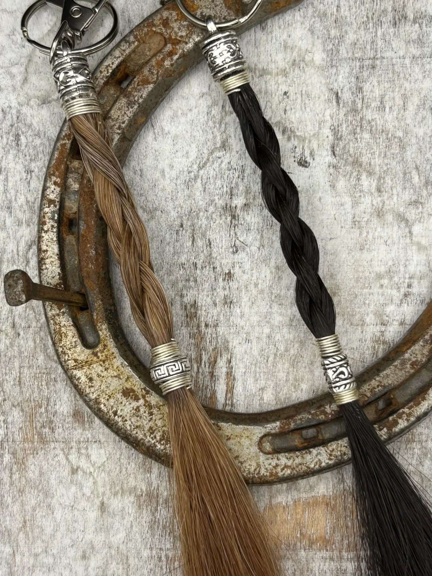 Our keychains and tassels are crafted to be a daily reminder that your horse is the key to your greatest joys. Honoring tradition, connection, and an unbreakable bond. The keychain can be made with a tassel or with a braided loop. A key ring with a claw is included.